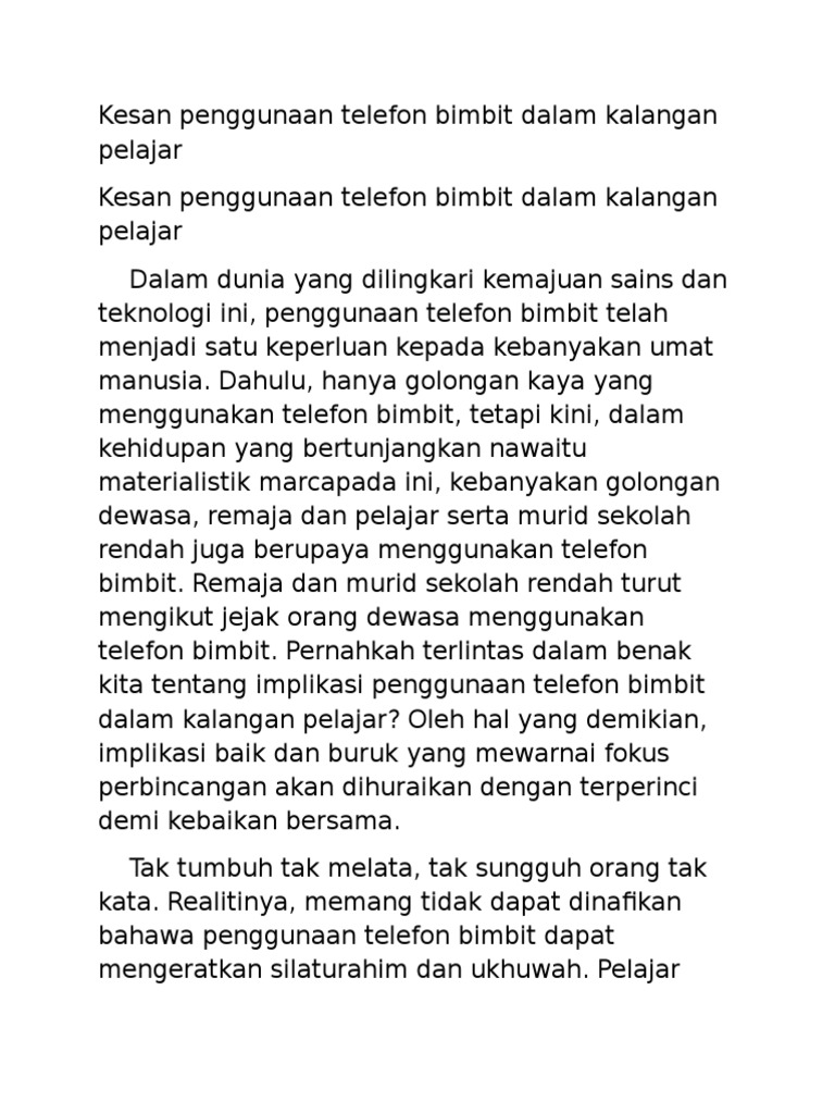 Karangan Kepentingan Dan Impak Buruk Telefon Bimbit Kepada Remaja Pdf